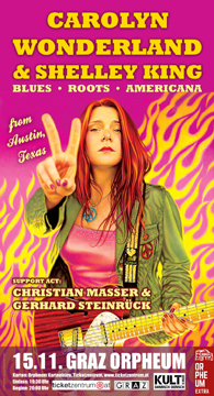 UNSERE NÄCHSTEN VERANSTALTUNGEN 2025: Sa 15.11.2025 Carolyn Wonderland & Shelley King (US) | Support: Christian Masser & Gerhard Steinrück (A) | Orpheum Extra | Info | Karten bestellen Kartenvorbestellungen für die Konzerte werden auch über kultur@damisch-derisch.at gerne entgegen genommen. | ||||||